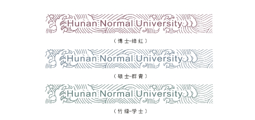 同时为增强识别性,不仅在证书中央以校徽为底纹,而且在左右及顶部纹样里增加湖南师大英文校名字样。(图四)