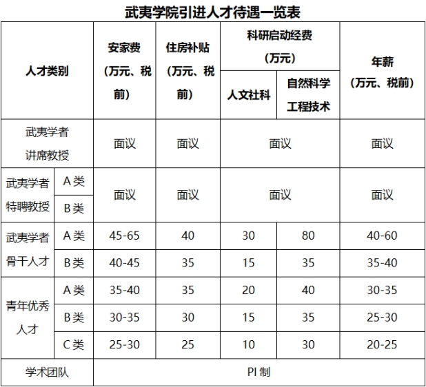 武夷学院高层次人才招聘计划