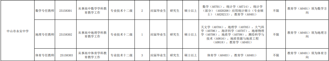 (三)符合报考条件的2025年中山市生源的公费师范毕业生可不受报考岗位的学历学位要求限制,但专业或专业方向须与招聘岗位一致。