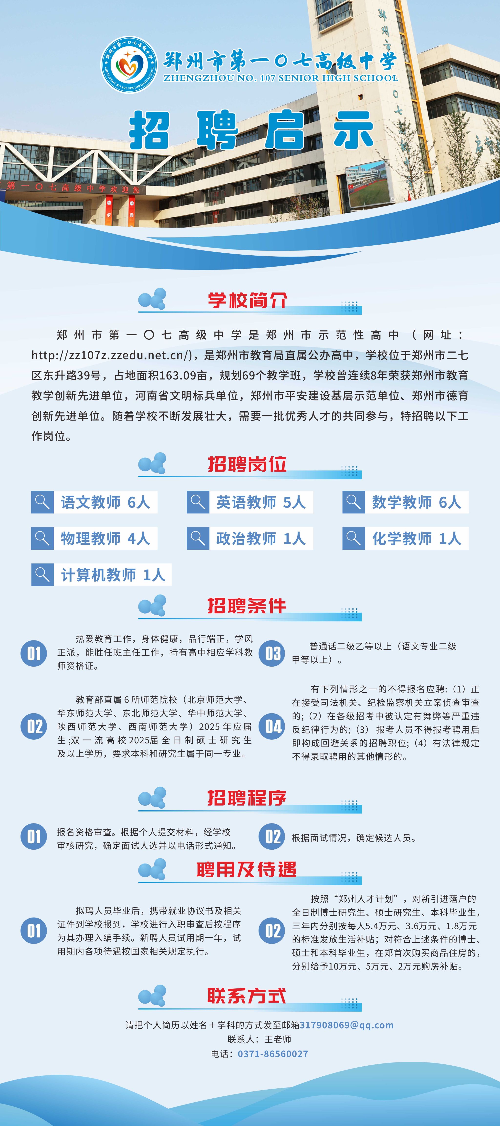 郑州市第一〇七高级中学招聘简章