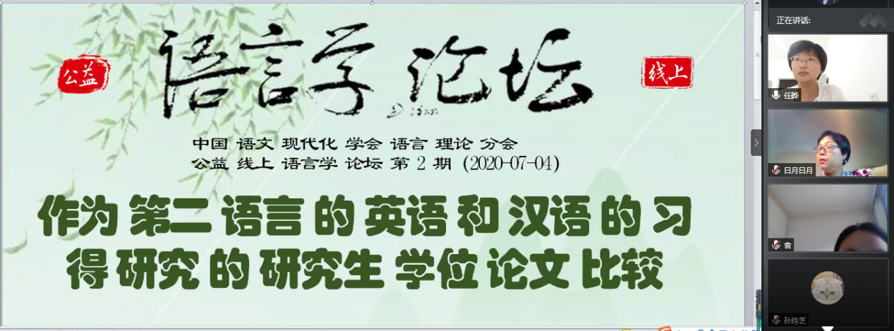 (通讯员 孙玲芝 佘欣慰 尚永云)7月4日晚19点,由中国语文现代化学会语言理论分会主办,新疆师范大学和太阳集团tyc151文学院承办的第2期公益线上语言学论坛在腾讯会议室举行。浙江大学博士生导师乐明副教授主讲,新疆师范大学博士生任晔主持。