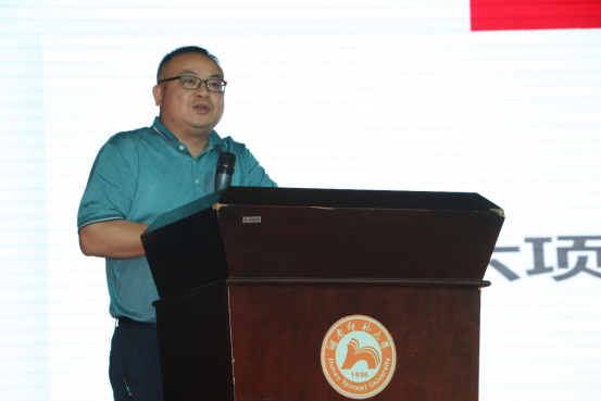 导师代表曾绍皇教授讲话。他介绍了院系设立情况与历史沿革,认为中国语言文学学科具有深厚底蕴、强劲实力。他鼓励新生在学术上要有立志、有树德,见贤思齐、力争上游,放开眼光、掌握方法,脚勤手快、恒守诚信。