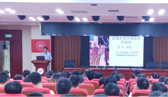 (通讯员 焦敏)9月21日晚,中山大学岭南学院院长陆军教授应邀来我校商学院讲学,在中和楼129报告厅作题为“从中国经济的特点读懂中国经济的走势”的学术讲座。讲座由商学院院长李军主持。
