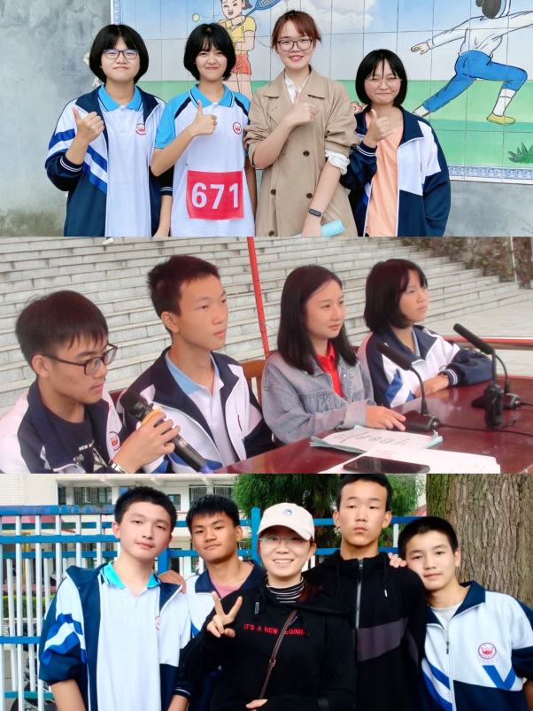 我校研究生支教团的支教老师刘海梅、柏媛、廖亚倩、张齐丹分别作为跑步项目裁判员、实心球裁判员、检查员、广播员,肖进兵、贾钰竹、彭卓金、张蕾、刘军飞作为各班班主任投入到工作中,保证运动会顺利举办。