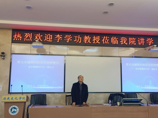 讲座中,李学功教授引用顾炎武在《日知录》中的表述,指出战国时期作为中国历史三大夹缝期之一,是中国思想文化的第一个高速发展的原创期,构建出较为成熟中华民族文化基底。这一夹缝期中,商周时代以礼乐制度为核心的王朝体制土崩瓦解,以封建制为核心的皇朝制度开始确立,对于我国古代文化制度建设具有举足轻重的奠基作用。李教授站在社会制度变革视角以“大发展、大变革、大纷争、大融合、大机会、大觉醒”对这一时期基本特点进行概括,认为战国时期的变革乃是革故鼎新之大变革,并通过商鞅变法、常例承袭与变例改造、诸子文化的出现等实际例证对这一时期制度变革的彻底性及对后世的奠基性进行有力说明。