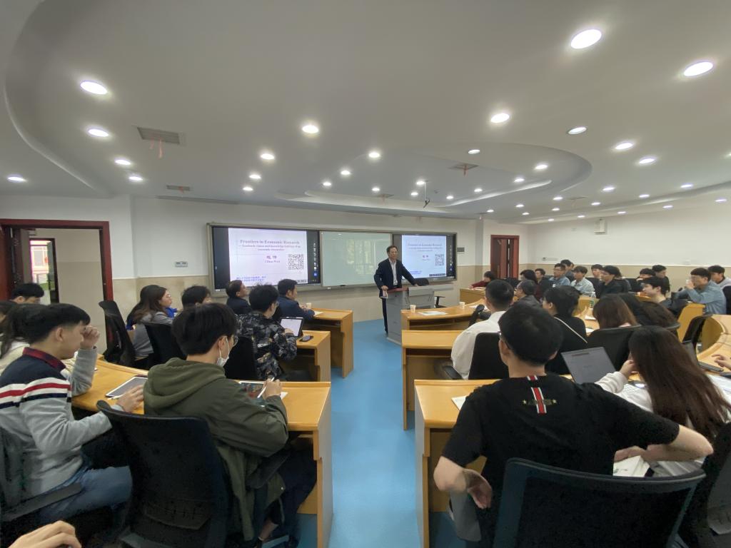 欧阳峣对赵伟教授的莅临讲学表示衷心的感谢,充分肯定了赵伟有关经济学前沿研究和追踪学术前沿方法的探讨,希望在坐的学生能够培养个人创新思维,脚踏实地,把学术作为一生的追求,创造更多科研成果。同时,他简单介绍了“理论经济学学科系列讲座”的宗旨和内容,将陆续邀请理论经济学科各领域的全国顶级专家,围绕经济学方法、宏观经济学、微观经济学、计量经济学、国际经济学、政治经济学、发展经济学、西方经济学、中国经济史、经济思想史等内容开展学术讲座,以帮助青年教师和博士、硕士研究生提升经济学学科专业素养。