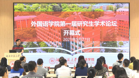 (通讯员 许晶 摄影 袁天翼 胡婷 许晶)为搭建学术交流平台,展现各学科较高水平学术成果,促进专家学者与学生之间的学术交流,外国语学院举办了第一届研究生学术论坛活动。5月27日下午,开幕式在腾龙楼613举行,院长曾艳钰教授出席论坛并讲话,副院长谭福民主持开幕式。