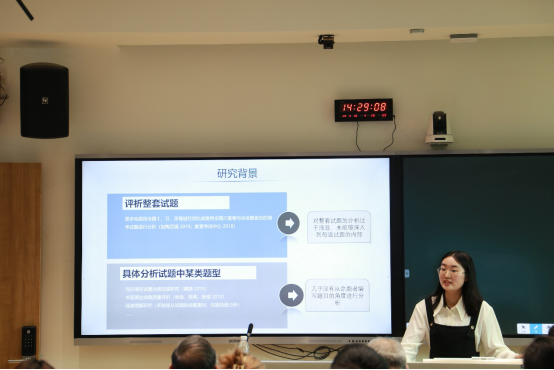 开幕式后,文学组、语言学与教学组及翻译学文化组三个组别各自开展分会场活动。同学们从研究背景、研究意义、论文创新等多方面对论文进行介绍。