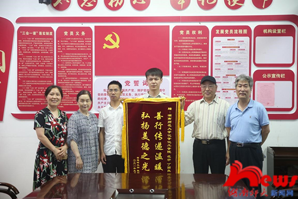 化学化工学院党委书记谭东波致欢迎辞,并简要介绍了近几年学院师生在崇德向善、践行青年使命方面取得的成绩。欧阳唯一介绍了近期学院师生中的两件好人好事:学院原党委书记于风江乘地铁途中协助救治晕倒路人、研究生范宇和丁国良岳麓山搜救不慎摔倒骨折的老人的事迹。