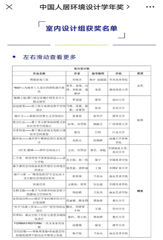 (供稿 美术学院)近日,我校美术学院研究生团队获“中国人居环境设计学年奖”金奖。