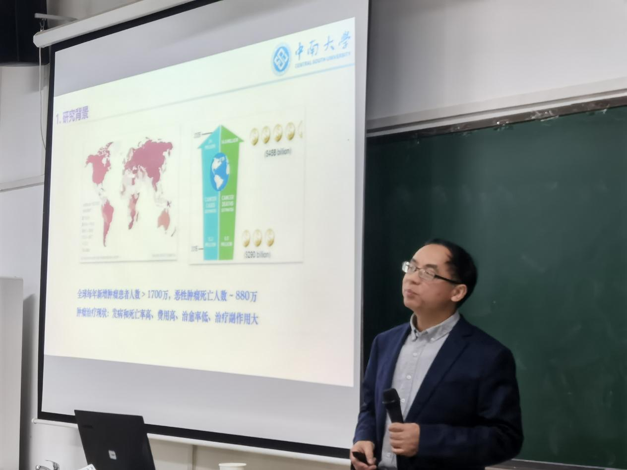 随后,刘又年教授以“纳米催化药物体系的构建及生物医药应用”为主题,针对普遍抗癌药物普遍的药效低、毒副作用大、生物相容性差和易产生耐药性等问题,巧妙地结合化学反应中催化作用,从光热、光动力、超声、仿生和免疫治疗等多角度,详细阐述多元催化抗肿瘤的机理及应用。