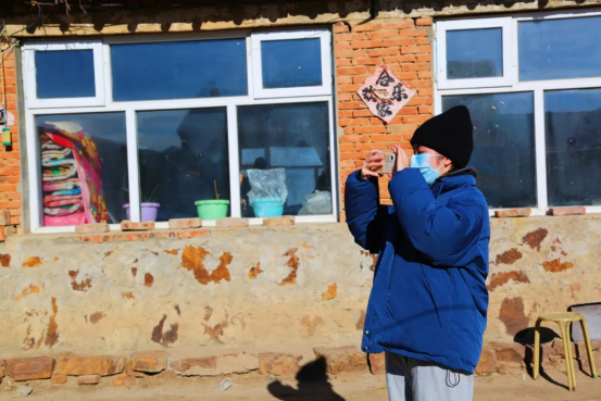 2022年1月2日,河北省张家口市张北县战海乡战海村,一位调研员正在采集院内环境信息。