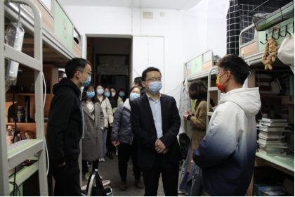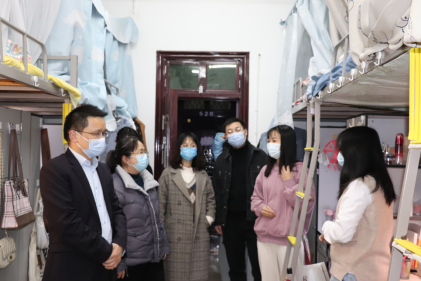 吕双伟一行实地查看了宿舍卫生、冷暖条件、楼道灯光、室友专业等生活、学习环境,了解常态化疫情防控环境下学生的生活、学习和体育锻炼等情况。走访过程中,老师们细心了解学生的学习情况和思想动态,聆听同学们的心声,与同学们展开深入交流。吕双伟老师和同学们分享了自己读研时坚持每天傍晚长跑的经历,引导学生热爱生活,锻炼身体,快乐学习;室友相处过程中要互相包容,彼此友爱。王芳老师强调了学校疫情防控期间的宿舍管理要求,叮嘱学生们要勤锻炼,多通风,有事多交流。此外,针对同学们的课程论文写作、毕业论文开题和答辩的准备情况,老师们耐心地答疑解惑,鼓励同学们要深入思考,奋发图强,为未来的工作和生活做好准备。