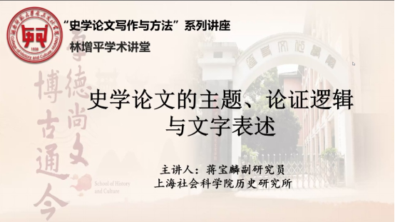 上海社会科学院蒋宝麟副研究员应邀做“史学论文的主题、论证逻辑与文字表达”专题讲座