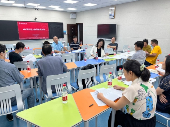 活动议程一,全体MPA导师学习教指委论文指导文件及近年全国优秀MPA学位论文,并结合MPA大讲堂第二讲熊易寒教授的“MPA论文选题策略与写作技巧”的专题讲座,对MPA学位论文指导进行热议,并针对当前我院MPA论文存在的质量问题提出了自己的优化举措。