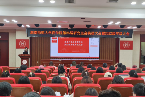 (通讯员 汪珺)11月3日下午,商学院第26届研究生会换届大会暨2022级年级大会在中和楼129报告厅举行。