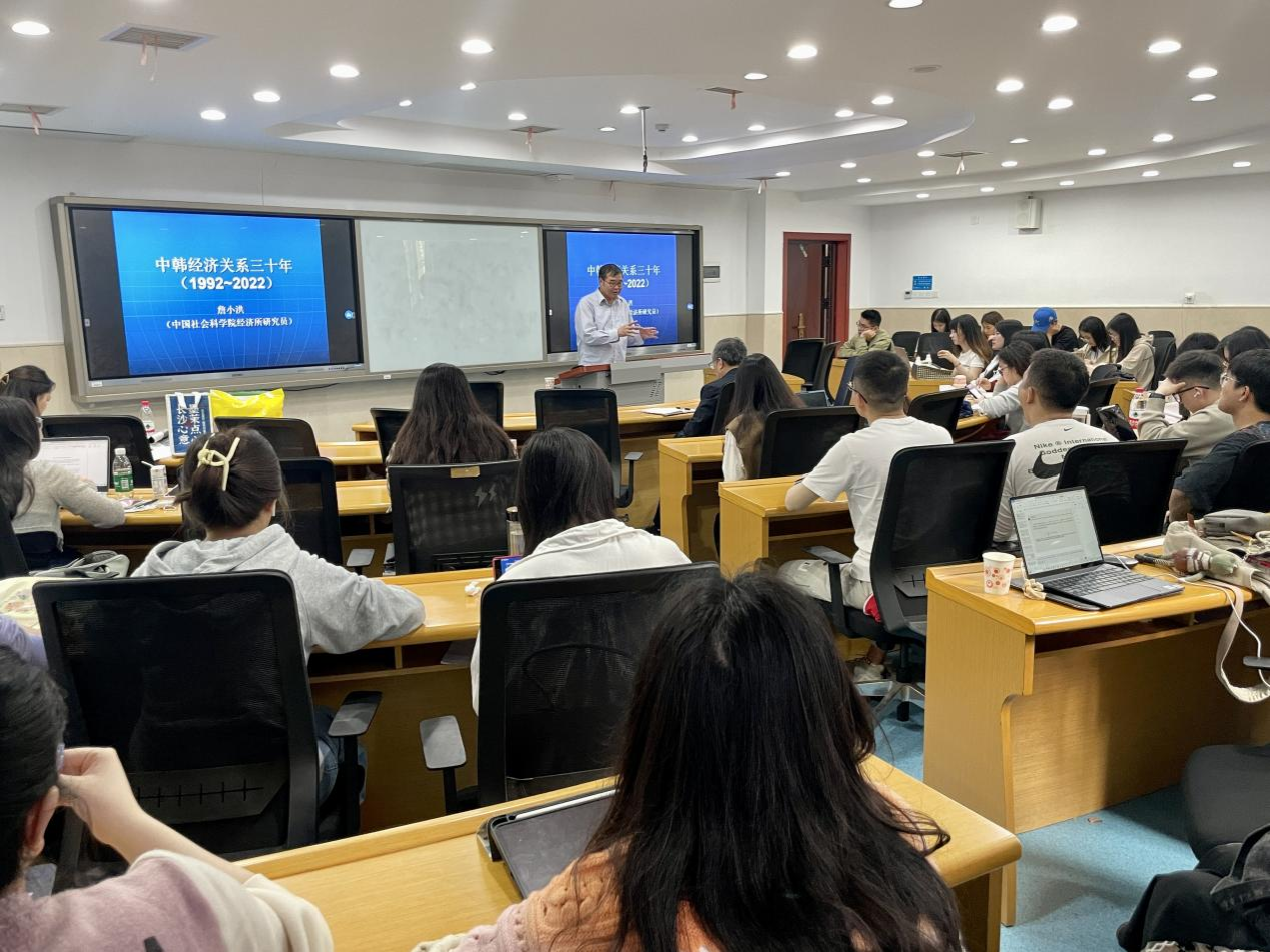 (通讯员 刘之逸)4月3日上午,中国社会科学院经济所研究员詹小洪教授莅临我校商学院讲学,在中和楼401教室作题为“中韩经济关系三十年”的学术讲座。讲座由商学院理论经济学国家一流培育学科负责人欧阳峣教授主持。