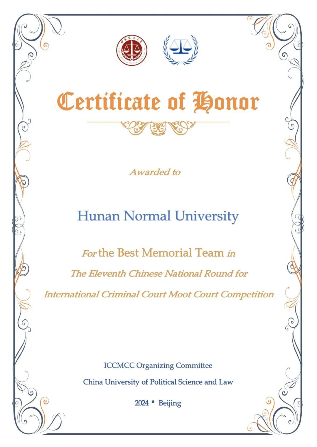 太阳集团tyc151首次参加ICC英文赛即以最佳书状奖入围庭辩阶段并斩获全国三等奖,向全国展示了师大学子扎实的知识基础、良好的口才及不懈的奋斗精神。这离不开法学院院领导的大力支持,离不开老师教练们的悉心指导,与每一位参赛队员夜以继日的奋斗息息相关。此次佳绩的取得,体现了我校在英文国际法模拟法庭竞赛方面的积极探索与涉外法治人才培养的良好成效,我校代表队将以此次竞赛为契机,认真总结经验教训,努力追求更好的成绩。