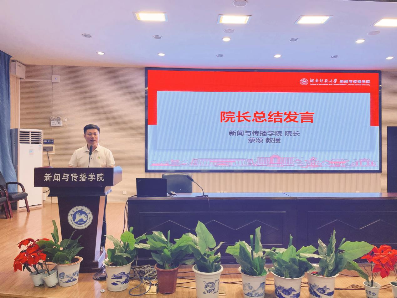 蔡颂在总结讲话中指出,在这个充满机遇与挑战的新时代,新闻与传播学院的学子要理解和运用好新传之“新”。他强调,一要坚定传媒理想,关注社会“新”动态,要对社会动态密切关注、对时代脉搏有准确把握;二是要打破思维定势,适应学科“新”发展,主动打破思维定势、提升认知层次,三是要拓展国际视野,讲好中国“新”故事,主动担当起文化传播使命,向国际社会讲述中国故事、传递中国好声音。他鼓励同学们成为有传媒理想、有专业技能、有国际视野、有家国情怀,“解读传播,求通天下”的湖南师大新传人。