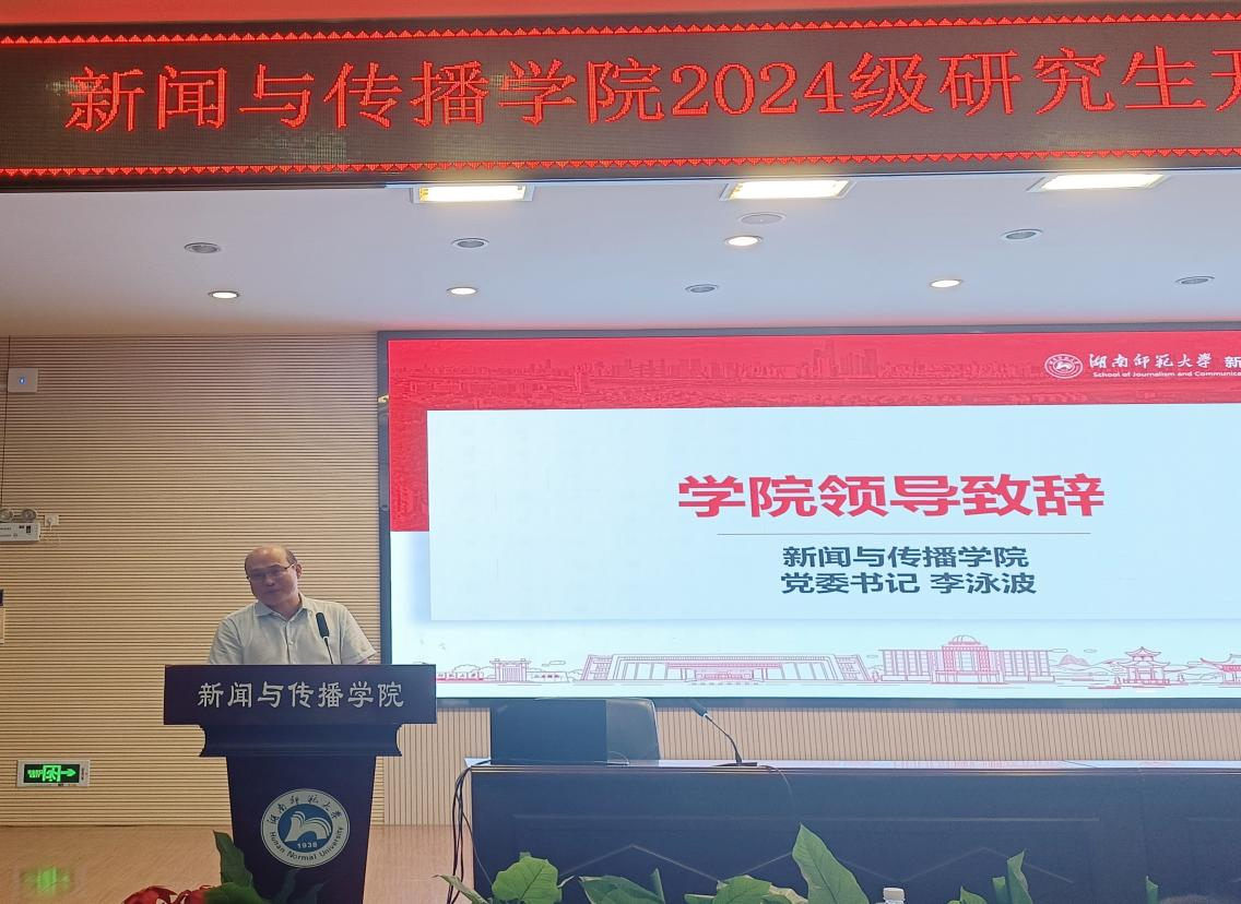 (通讯员 孟欣)9月9日晚,新闻与传播学院在书山论坛举行2024级研究生开学典礼暨学术道德与规范教育。新闻与传播学院院长蔡颂、党委书记李泳波、副院长燕道成、副院长李琦出席,开学典礼由燕道成副院长主持,研究生新生(硕、博)入学教育由2024级新闻传播学研究生黄子宁主持。