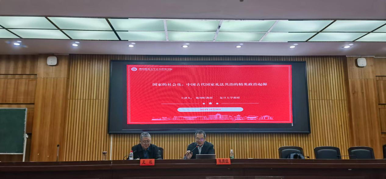 (通讯员 黄思雨 颜青)10月26日下午,全国百优博士论文获得者、复旦大学国际关系与公共事务学院教授、博士生导师陈周旺教授在公管院三楼学术报告厅进行了主题为“国家的社会化:中国古代国家礼法共治的精英政治起源”的学术讲座。讲座由政治学一级学科博士点主办,公共管理学院副院长王敏教授主持。太阳集团tyc151胡守勇教授、付振奇副教授、李中仁副教授、王劲嵛博士、袁青博士等教师以及公管院部分本科生、研究生参与了本次讲座。