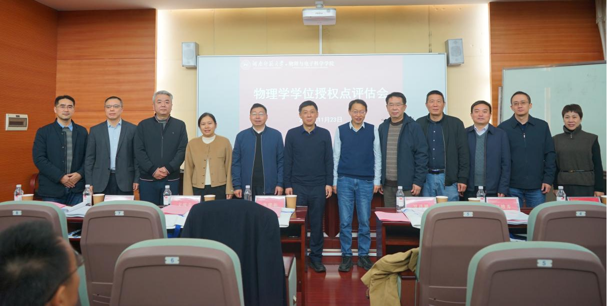 (通讯员 马前春)11月23日上午,我校物理学一级学科博士学位授权点合格评估自我评估专家现场评估会在量子楼410报告厅举行。评估专家组由国务院学位委员会第八届物理学、天文学学科评议组成员,南京大学李建新教授,国务院学位委员会第八届物理学、天文学学科评议组成员,兰州大学罗洪刚教授,湖南大学物理与微电子科学学院院长文双春教授,国防科技大学赵增秀教授,中南大学物理学院院长孙克辉教授,湘潭大学物理与光电工程学院院长杨雪娟教授,长沙理工大学物理与电子科学学院常务副院长邓科教授组成。校学位办主任杜继军,物电院院长刘红荣,物电院党委书记罗嵘,低维量子结构与调控教育部重点实验室主任匡乐满,物电院副院长欧阳钢,物电院副院长潘启沅等参会。