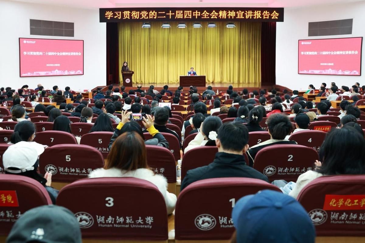 本次授课与学习贯彻党的二十届四中全会精神宣讲报告会相结合,报告会由校党委副书记段巍主持,采用“主会场+分会场直播共学”形式开展,我校2025级部分博士生代表现场参会学习。