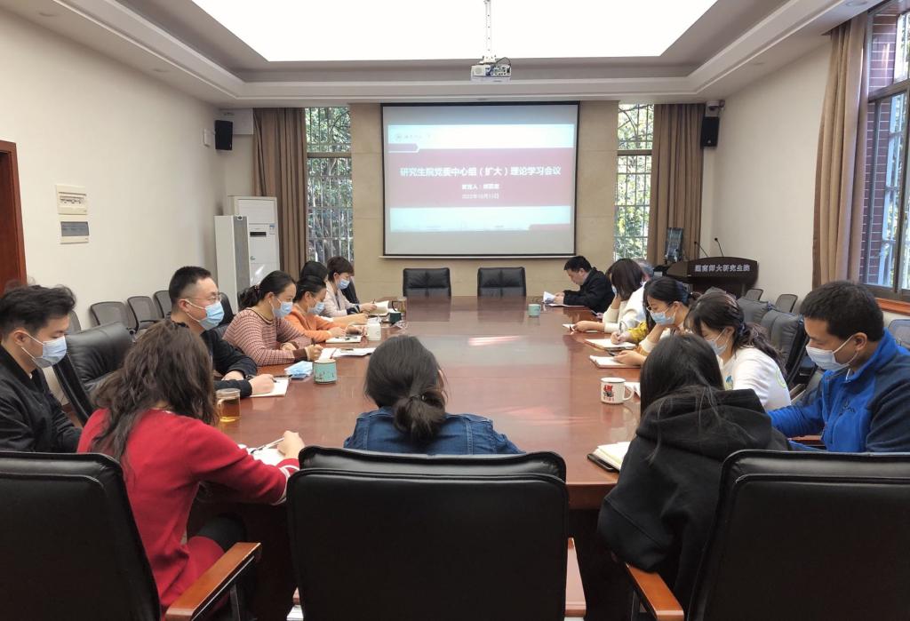 会上,苏涵琼、朱倚萱、刘芃围绕学习主题作了研讨发言。研究生院全体教职工党员参加学习。