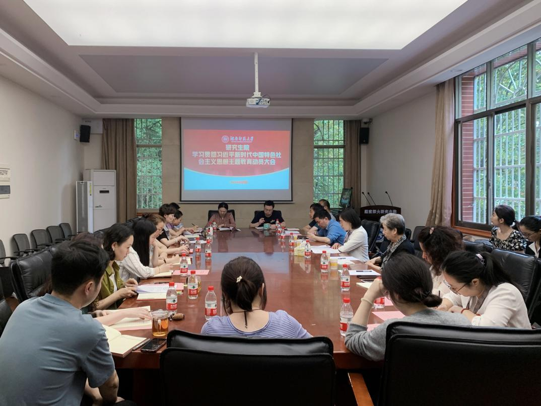 (通讯员 张韵)4月21日下午,研究生院在院二楼会议室召开学习贯彻习近平新时代中国特色社会主义思想主题教育动员大会。学校主题教育第一督导组副组长、人事处副处长朱映红,研究生院全体教职工,离退休教职工代表及直属学生党支部党员代表出席会议。会议由研究生院党委书记龚舒主持。