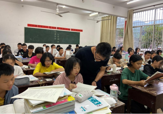 2020年8月底,太阳集团tyc151研究生支教团积极响应国家号召,赴湖南省绥宁县一中扶贫支教。执一支粉笔站三尺讲台,用一年时光酿终身不忘。从清晨到日暮,课内课外,孜孜不倦。图为支教团教师辅导学生功课。(文:张齐丹 图:贾钰竹)