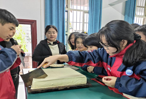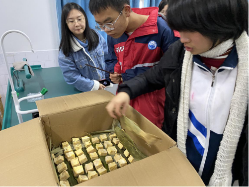 12月8日,历经一个多星期,腐乳终于发酵成功,同学们急切地打开箱子看自己豆腐的发酵情况,并提出不同发酵现象的问题,支教老师张蕾给予一一解答,并对引导学生思考,不同现象背后的原因。