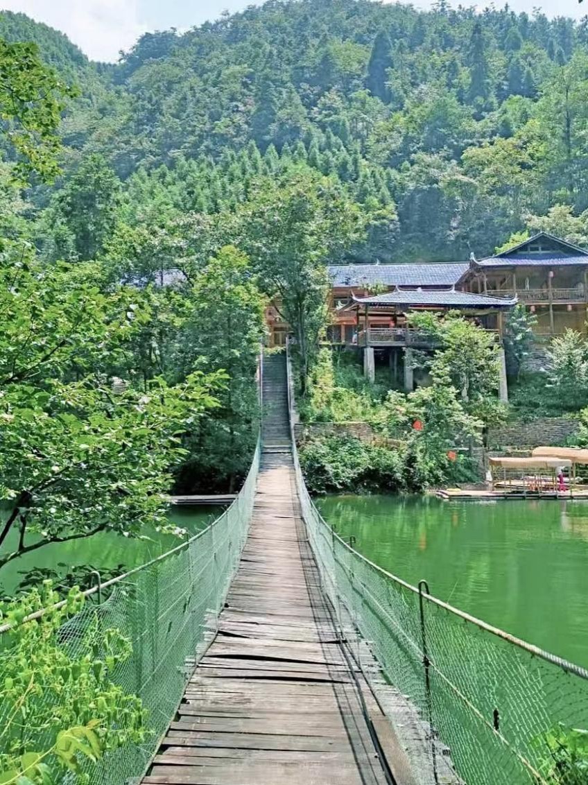 千峦环翠,万壑流青。我们在登山途中,发现柳林村有大小不一的峡谷依山势错落其中,峡谷中的水在植被掩映下显得绿而幽深。木质吊桥横跨其上,偶有几尾鱼从桥影中穿行而过,漾起波纹。摇晃间踏上另一峰岭,我们走向新天地。