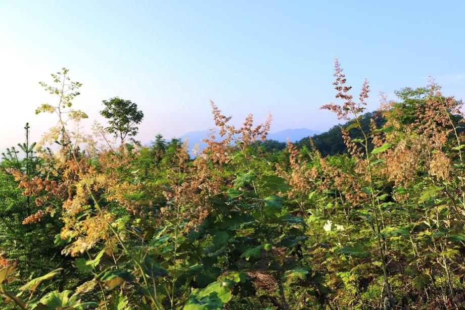 大王山至高点,主峰海拔1166米,林场有野生植物2000余种,其中国家重点保护野生植物16种,山脊上还有四叶珠、叶下红等名贵药材和红皮紫荆、青岗栎等珍稀植物群部落。是名副其实的天然氧吧、生态王国、物种天堂。