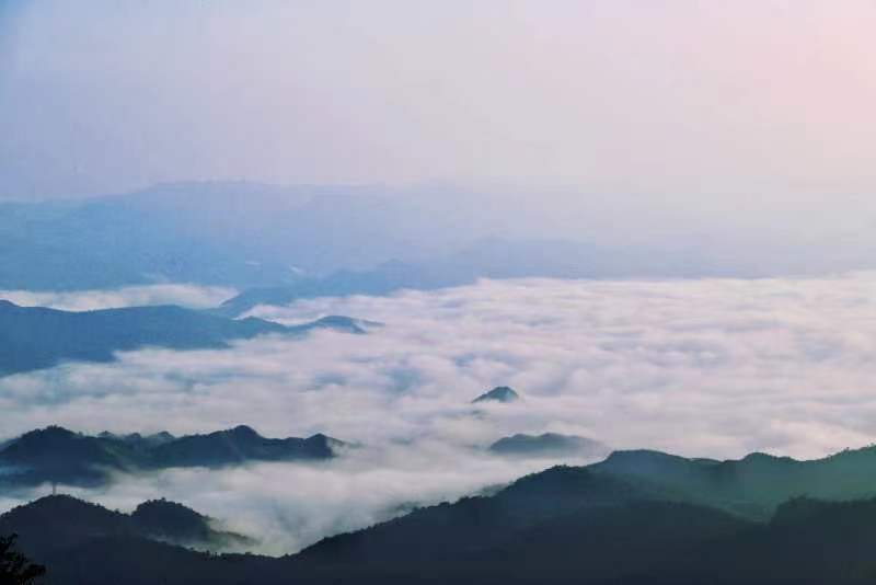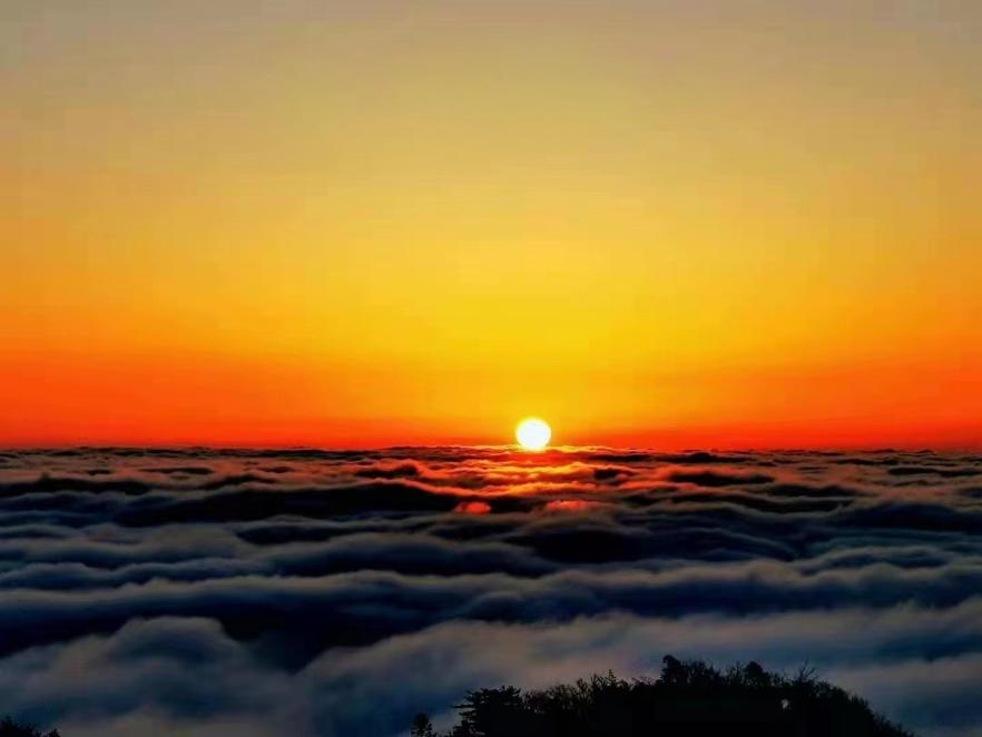 日出之美,胜在宁静。日出之灿,美在人间。日出时分,我们登上大王山顶,看金色的太阳从地平线上缓缓升起,为群山铺上一层暖色。洁白的云海和初升的太阳,是为晨曦奉上的一副壮丽油画,是柳林村专属的橘色浪漫。