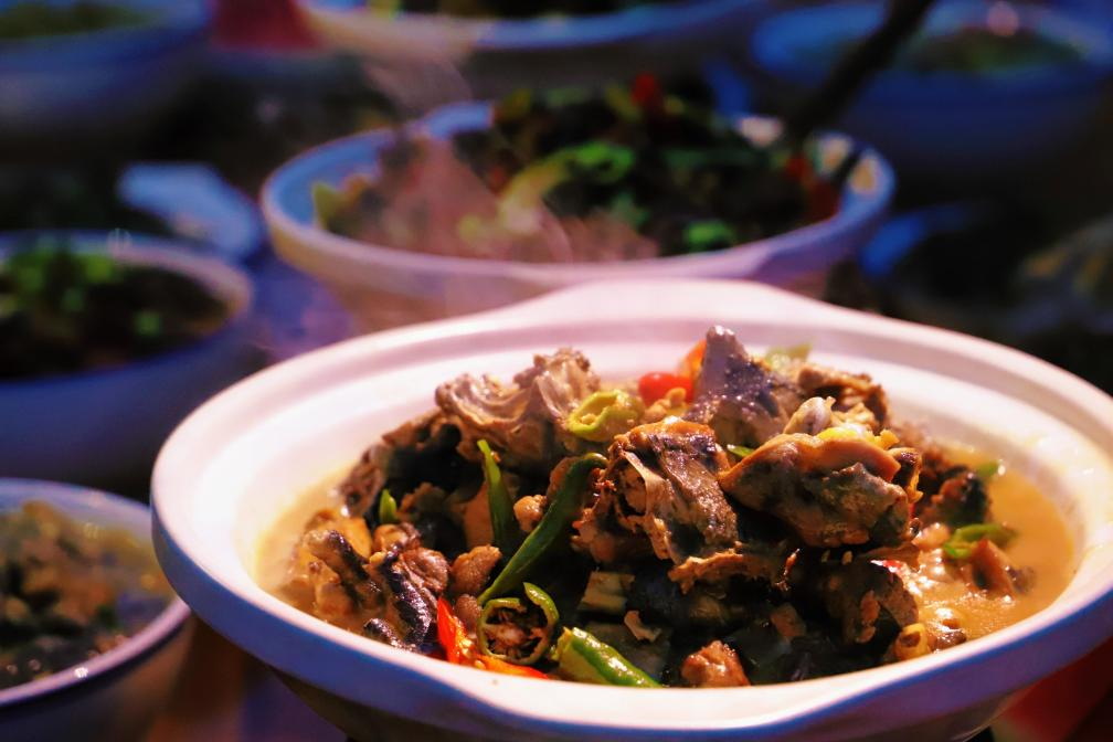 柳林鸡肥美、鲜香,若想大饱口福,唯有猪肚鸡火锅能满足。用一锅细火慢熬的柳林鸡汤,搭配当地新鲜猪肚,再加入野山菌、木耳等山间馈赠的生灵,时令山珍,一锅网罗。一天的忙碌后,我们围在桌前品尝美味的柳林鸡火锅,疲惫的身心被美食治愈。