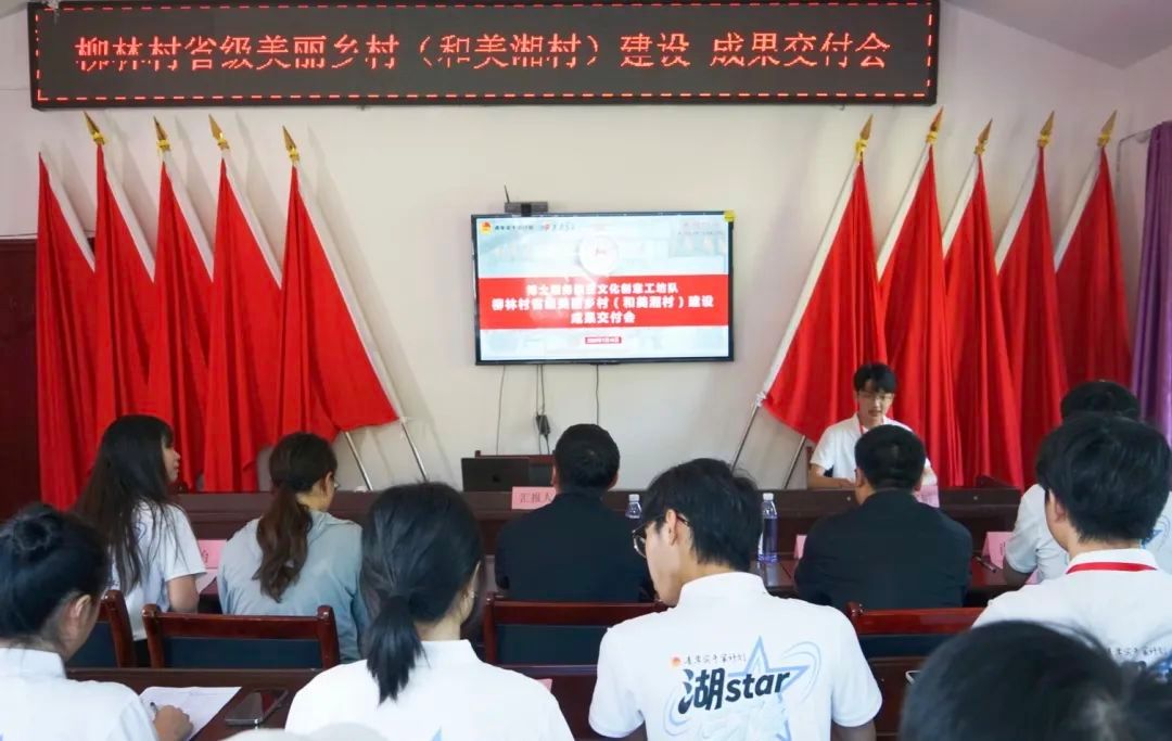 7月16日下午,太阳集团tyc151博士服务团暨文化创意工坊队(以下简称“实践团”)在柳林村党群服务中心举行柳林村省级美丽乡村(和美湘村)建设成果交付会。柳林村党支部书记罗显坤、省级美丽乡村建设规划设计负责人刘长华、省“芙蓉学子·乡村振兴”公益计划项目组委会专栏记者及实践团全体成员参会,实践团成员李文韬主持本次会议。