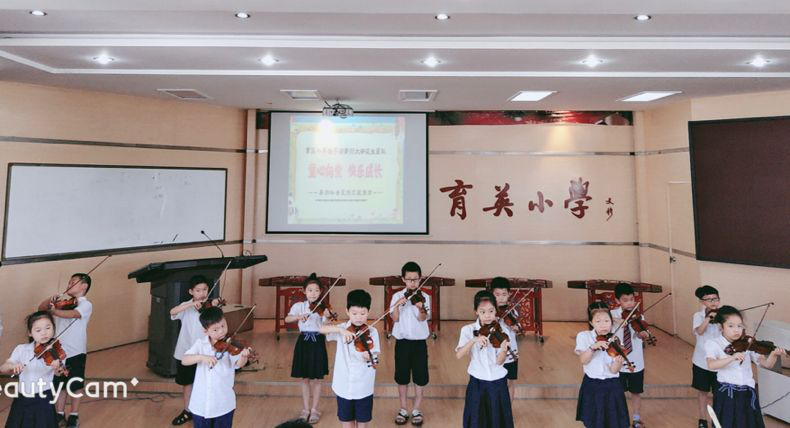 演出在合唱《少年中国梦》中拉开序幕,让学生们在精彩的表演中,明白了珍惜时间的重要性;第二个节目是小提琴二重奏《轻舟荡漾》,两个小朋友演奏的非常整齐好听;舞蹈《小小书法家》,让大家在有节奏的韵律中感受到了少年儿童的青春和活力;合唱《春晓》《绝句》让在场的观众都陶醉在歌声中;接着由十三个一、二年级的孩子们合奏大家耳熟能详的小提琴曲《小星星变奏曲》,孩子们活泼可爱引得现场观众掌声不断;然后是扬琴齐奏《学猫叫》和合唱《贝壳之歌》,在整个演出过程中,孩子们的欢笑贯穿始终;紧接着是研究生团队的演出小提琴和钢琴二重奏《天空之城》,旋律优美,博得阵阵喝彩。最后演出在师生共同演唱的《我和我的祖国》中画上了圆满的句号。所有在场的同学们都挥舞着手中的五星红旗,激动人心,场面十分壮观。