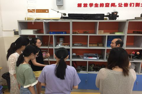 7月5日上午,李湘黔老师、STEM教育实践研学组组长贺俊老师同实践队成员在中国民间文化与物理趣味STEM教育馆开展了教学研究经验交流会。