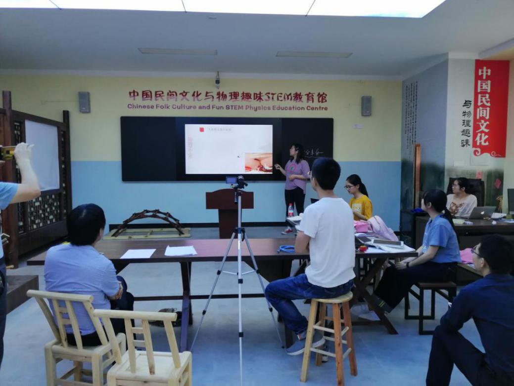 7月9日下午,李湘黔老师、邓放明老师以及贺俊老师同实践队队员在中国民间文化与物理趣味STEM教育馆进行了暑期实践汇报总结交流会。