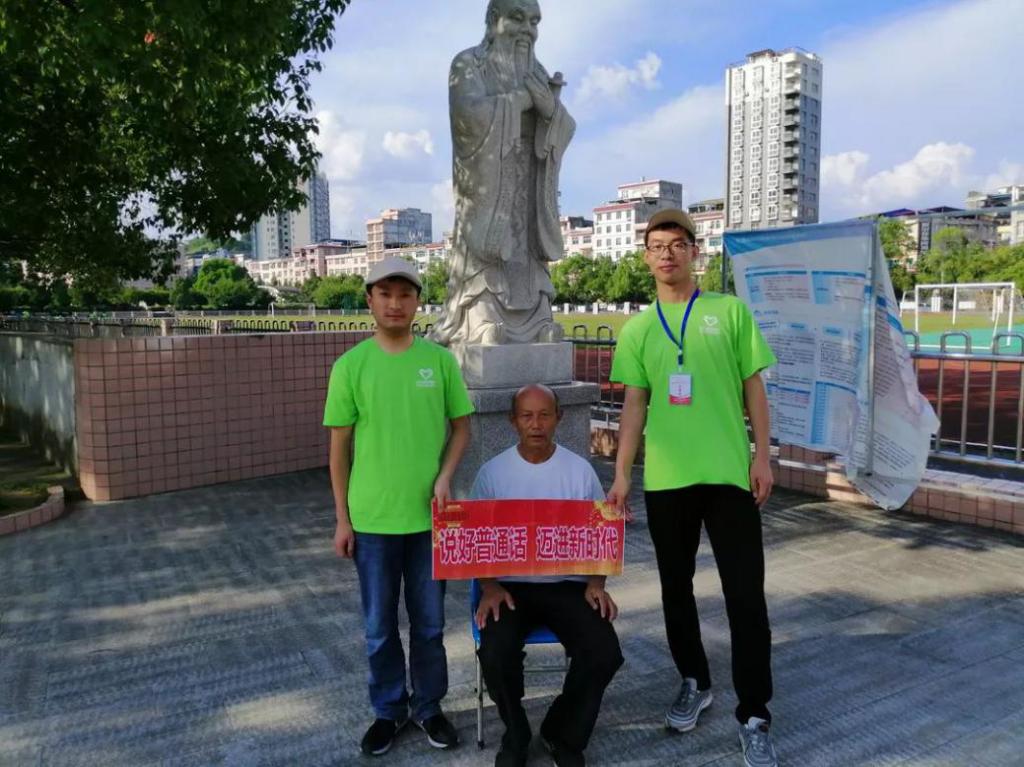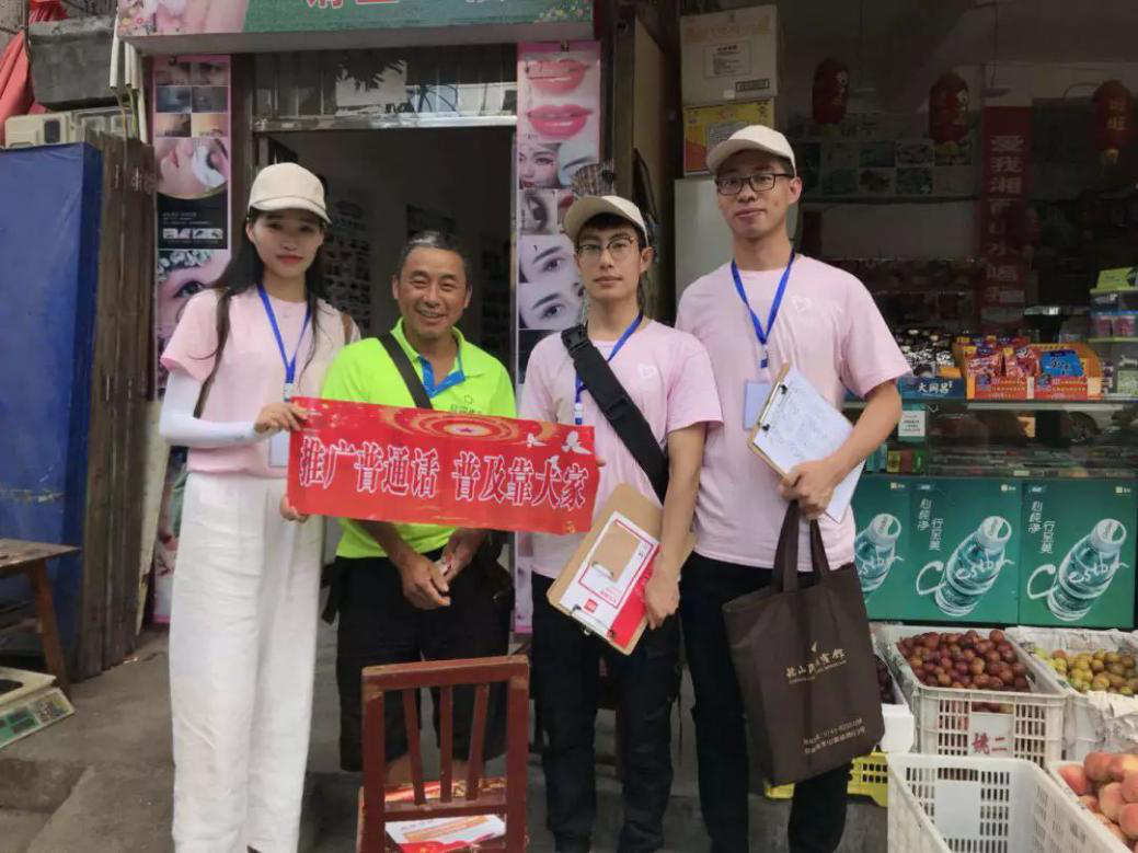下午1:30志愿者们正式出发,组成四个小组分头在龙山县较繁华的街道上,对一些居民进行随机访问并发放宣传册。访问内容主要包括以下三项:询问对“推普脱贫攻坚”的看法;强调学好普通话的重要性;替居民进行普通话纠音。