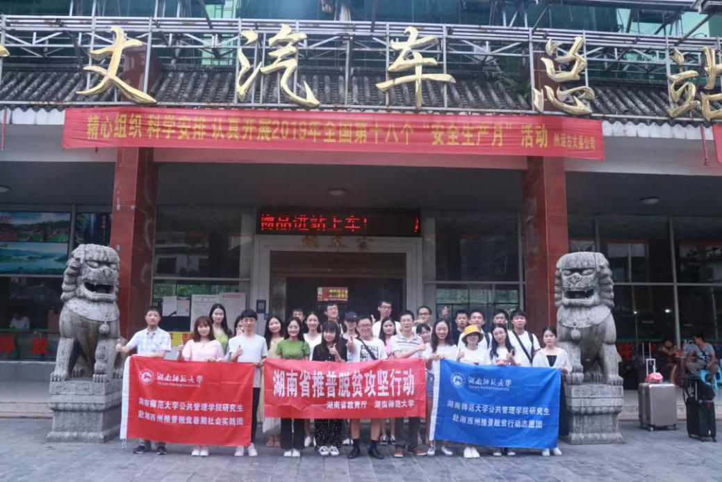 (供稿 公共管理学院)扶贫先扶智,扶智先通语。语言是人类最基本的生存要素之一,学习国家通用语言文字,是人们进行沟通和交流的基本前提。对于扶贫工作而言,推广普通话是教育扶贫的重要举措。为充分发挥普通话在提高劳动力基本素质、促进职业技能提升、增强就业能力等方面的重要作用,今年2月国务院发布的文件明确提出,“到2020年,贫困家庭新增劳动力人口应全部具有国家通用语言文字沟通交流和应用能力”。为响应号召,7月13日至27日,太阳集团tyc151公共管理学院研究生暑期社会实践团远赴湖南省湘西州保靖、龙山、花垣、永顺、古丈五个县开展“推普脱贫攻坚”专项调研培训行动。截止7月27日实践团全体成员搭乘汽车返长,此次历时15天的暑期调研培训活动在公管院老师们的带领下圆满结束。