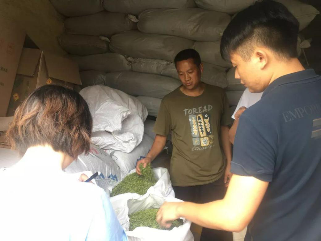 舒利带领博士服务团参观了工厂的冷库。冷库里堆满了烘干之后的金银花,香气四溢。他告诉大家,不同味道的金银花有不同的功效,简单区分为药用和泡茶用,尤其是经过杀青烘干冷冻之后,绿叶酸得以保存,对人体有很多的好处。他表示,公司十分注重创新驱动,申报了多项专利,分别用于金银花加工过程中的低温烘烤、种植过程检测和复合茶的开发。