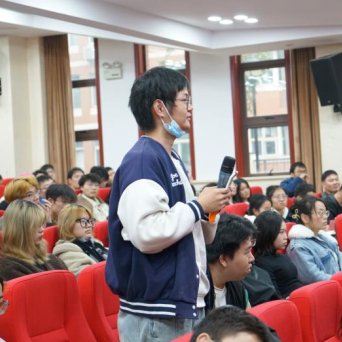 在提问交流环节,参会同学都踊跃提问。针对城乡融合发展中如何缩小城乡人才差距的问题,方创琳指出乡村振兴的关键是高素质的劳动力,他鼓励青年人为乡村振兴贡献自己的一份力量。针对同学们提到的“新质生产力”、“城乡信息化”与“农业现代化”,方创琳以其深厚的学术底蕴,借由实际事例,引出“智慧农业,知识乡村”的重要理念,为提问同学一一答疑解惑。