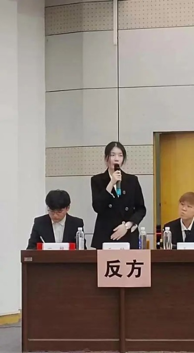 在攻辩小结中,我方三辩李英姿同学面对正方发起的大规模密集质询时,用简短有力的回复,将对方的时间消耗殆尽,为我方赢得了较长的论述时间。