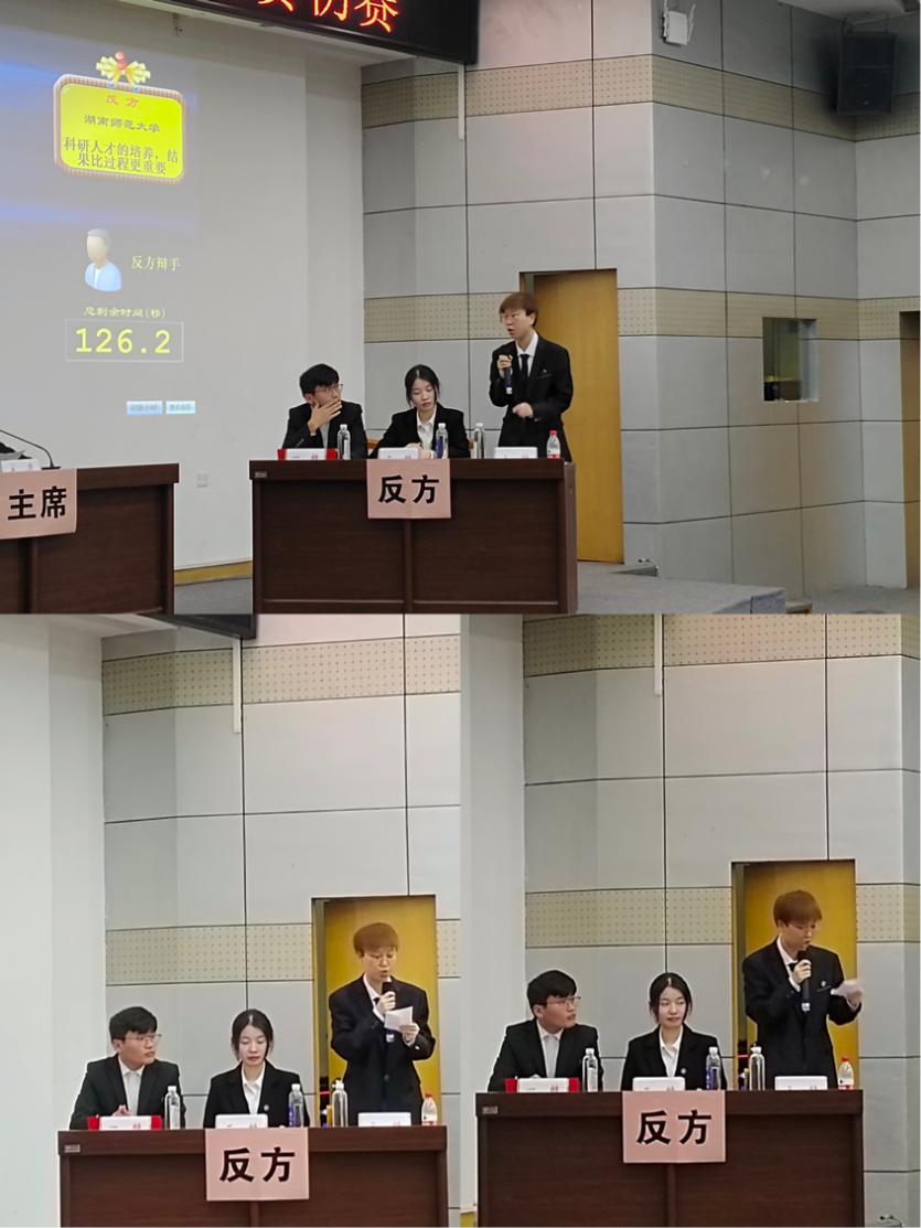 此次比赛,我校辩论队与湖南工业大学辩论队就“科研人才的培养,是过程更重要,还是结果更重要”这一辩题展开了激烈的辩论。