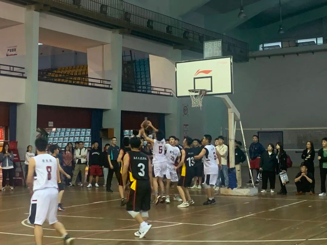 当日下午3时,男子小组赛在体育馆中厅和东厅激战正酣,汗水挥洒赛场。外国语学院和法学院驰骋球场,法学院率先把握比赛节奏,不断命中,步步超越,以63比16的成绩拉开差距。